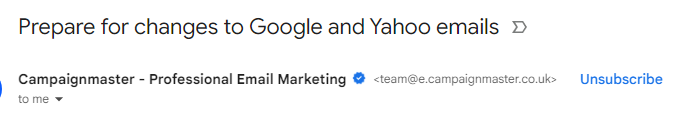 These links do not automatically appear at the top of all emails. The email service provider (ESP) needs to instruct the email client to include it. Fortunately, Campaignmaster has this in place as standard so you don’t need to worry about including it in your campaigns. This will help reduce your spam complaints and also keeps you legally compliant.